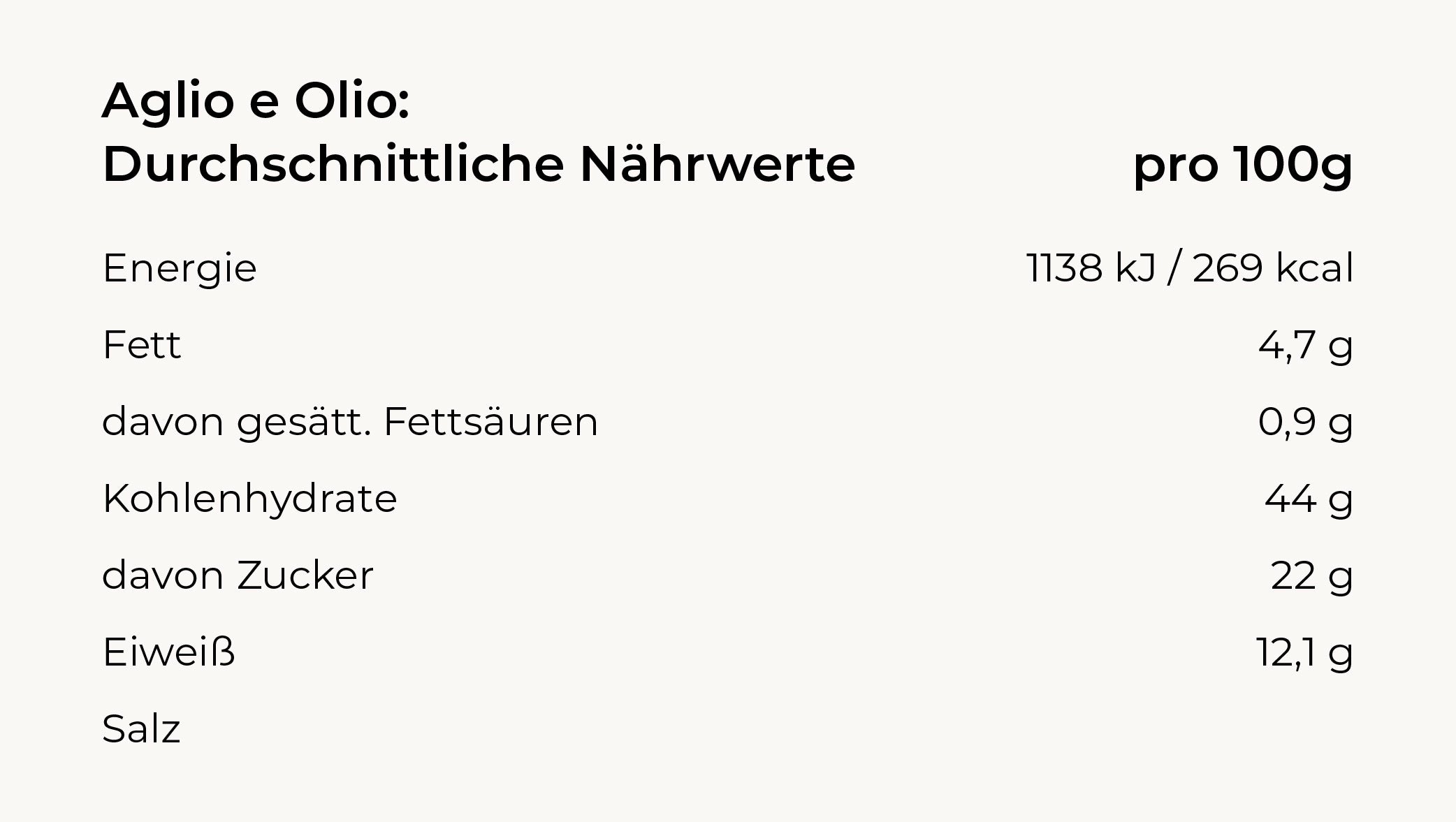 Mit Bio-Knoblauch und leicht pikant, so wie es sich für ein Aglio e Olio gehört! Auch wenn du es nicht aussprechen kannst, kannst du es ab sofort kochen! Einfach mit Olivenöl anbraten und deine Spaghetti hinzugeben.