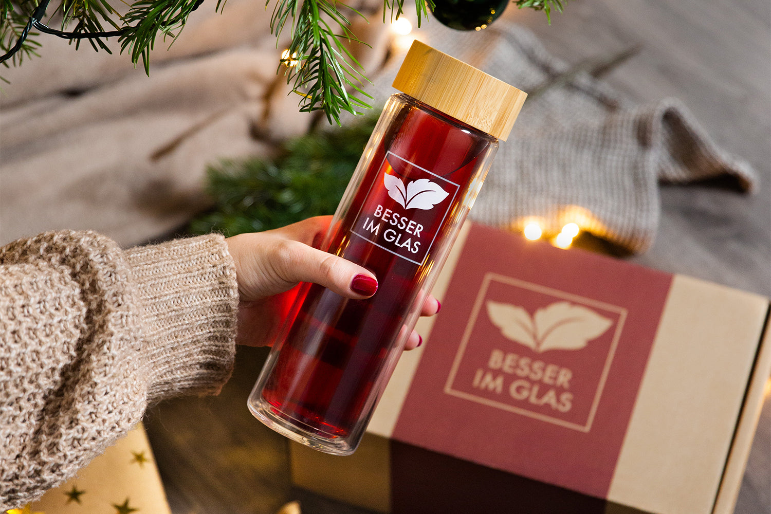 Egal wann, wo und wie - deine doppelwandige Glasflasche begleitet dich den ganzen Tag mit deinem Lieblingstee. Dazu ist sie noch ein wahrer Hingucker!