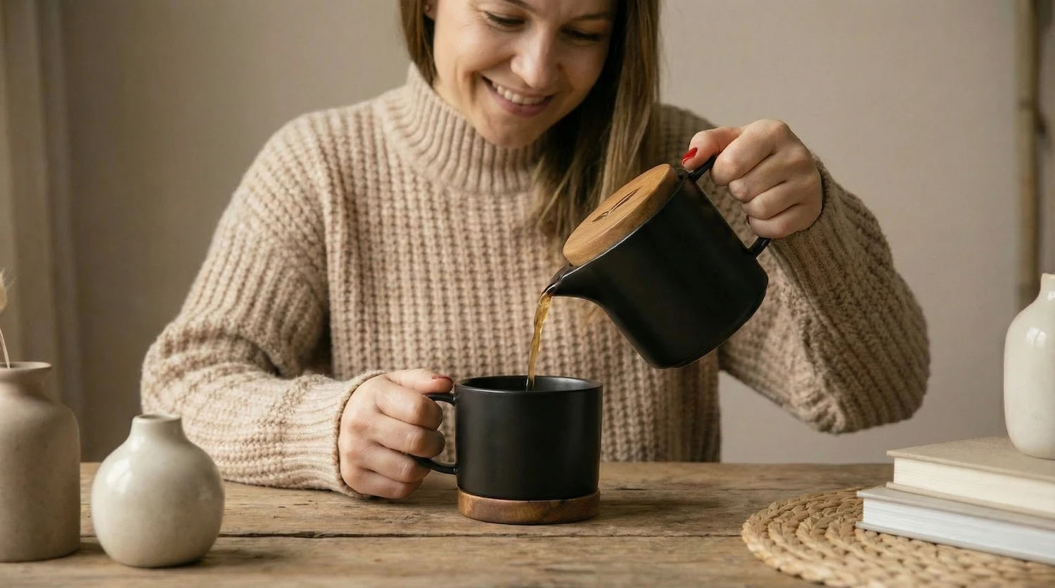 Entfliehe dem stressigen Alltag und genieße am Abend einen Tee-Moment nur für dich. Mit dem Keramik-Set kannst du deinen Tee wunderbar vorbereiten und mitsamt Tasse mitnehmen auf die Couch, in deinen Sessel oder wo auch immer du deinen Tee genießen möchtest!
