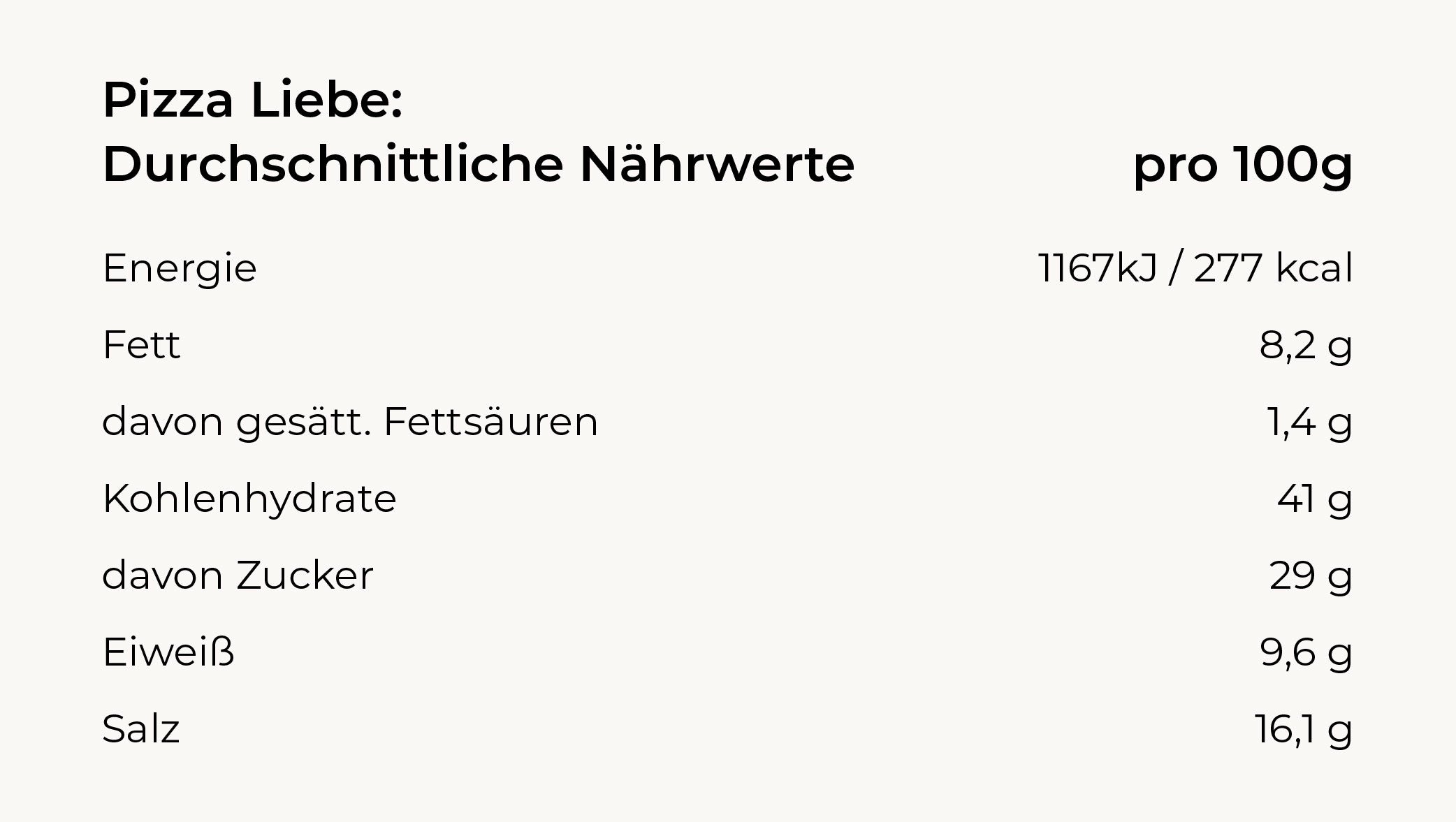 Ist die Pizza Liebe vegan, glutenfrei und frei von Zusatzstoffen?