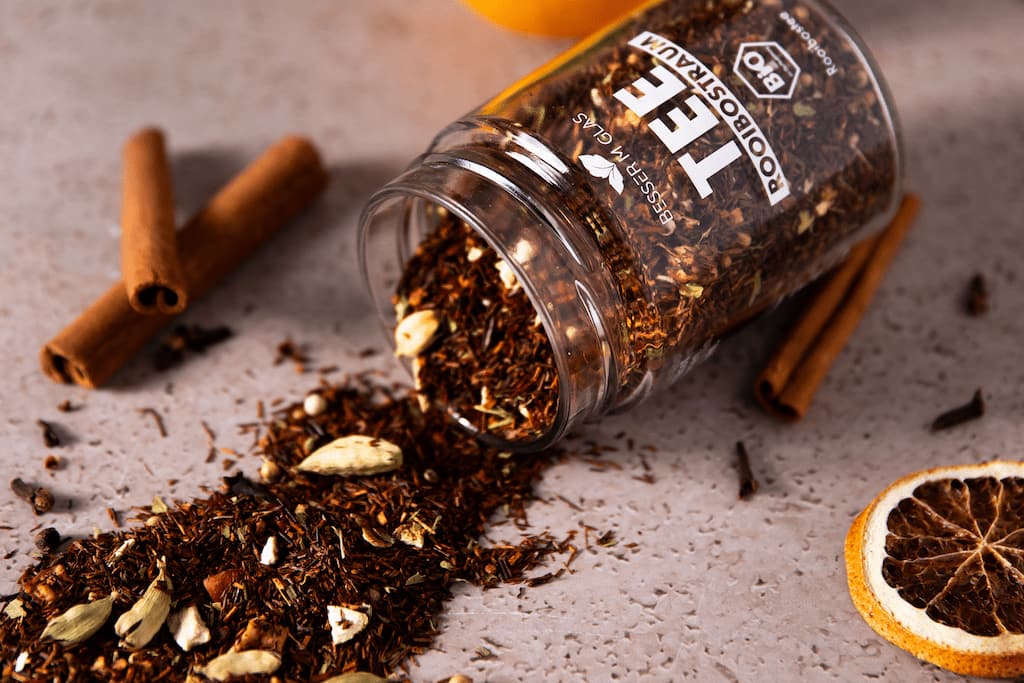 Bio Rooibosteemischung mit Bio Gewürzen aromatisiert mit Honig-, Zimt-, Vanille-, Orangen- und Ingwergeschmack: