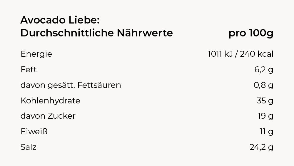 Kann Spuren von SENF enthalten.Avocado Liebe (49g)