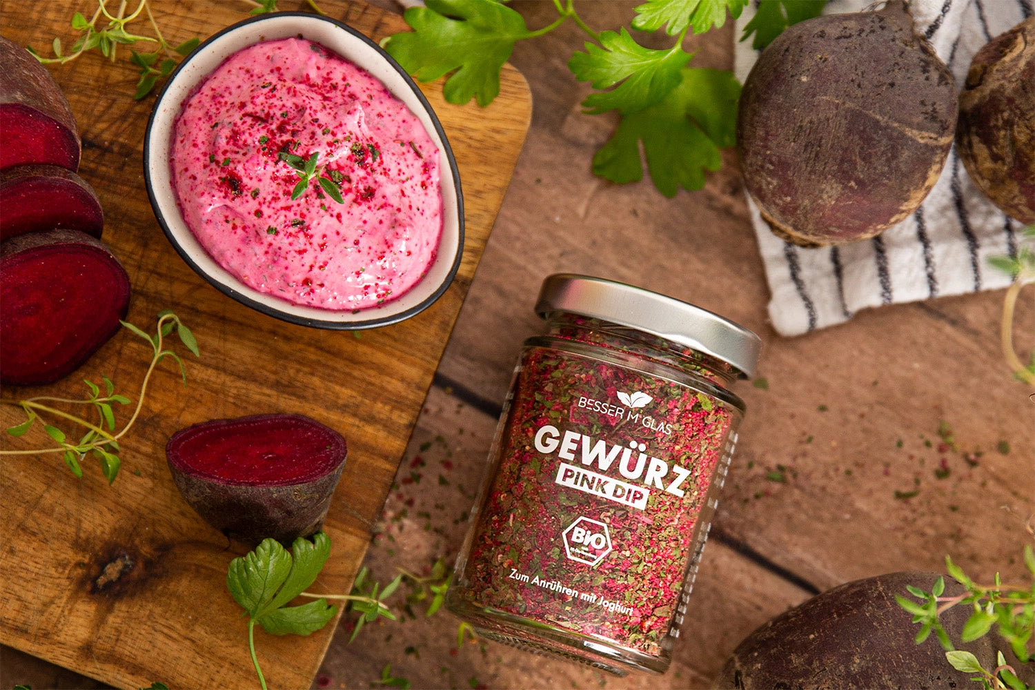 Think Pink! Auch wenn die Rote Beete für die tolle Farbe sorgt, lässt sie geschmacklich genug Raum für die fruchtige Mango, den würzigen Bärlauch und den leicht säuerlichen Sumach - quasi ein Kräuter-Dip in der aufregenden Version!